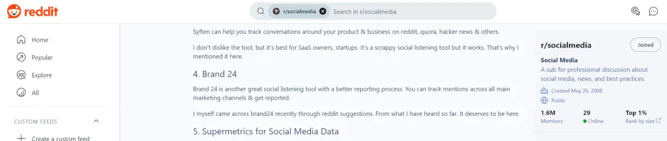 Pro Tip: Monitor relevant subreddits for discussions about your brand or industry. Engage tactfully by addressing questions, offering solutions or providing additional information. This positions your brand as a helpful and knowledgeable resource while naturally driving mentions and traffic.