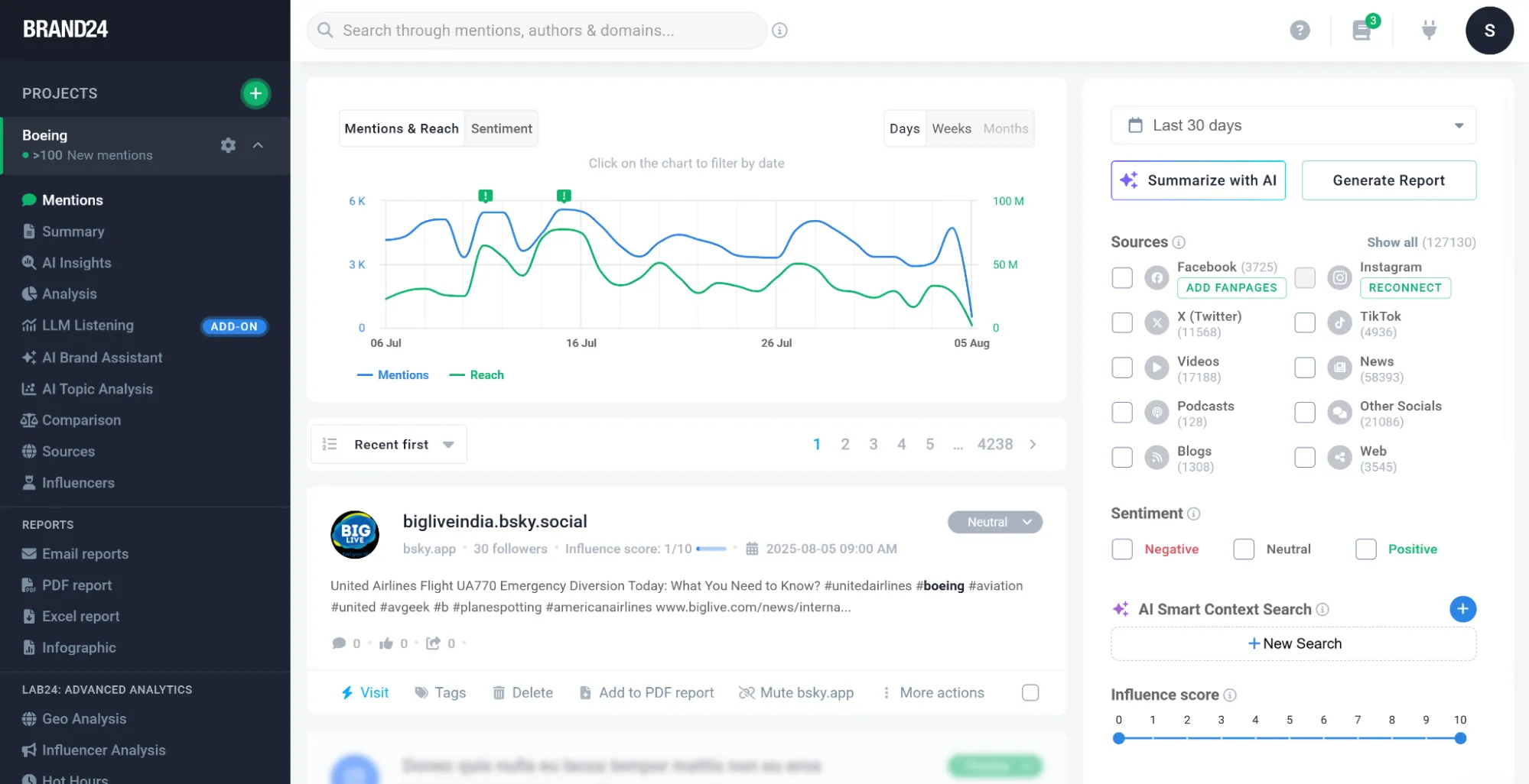 By using Brand24 to identify high-impact platforms - such as industry blogs, Reddit communities or LinkedIn groups - you can focus outreach and engagement efforts where they will most effectively increase off-site mentions. Brand24's sentiment analysis further helps ensure those mentions are positive, so AI models learn about your brand in a favorable context. Integrating these insights into your content and PR strategy not only boosts human awareness; it also feeds the data signals that large language models rely on when deciding which brands to highlight.
